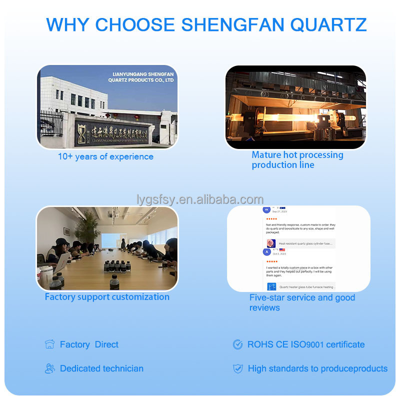 • De Shengfan quartzglasbuis is perfect voor een verscheidenheid aan toepassingen vanwege de kwartsbuis en het gesmolten siliciumbuismateriaal.een superieure prestatie en duurzaamheid biedenDeze kwartsglasbuizen zijn verkrijgbaar in verschillende wanddiktes en buitendiameter, waardoor ze ideaal zijn voor elke toepassing.